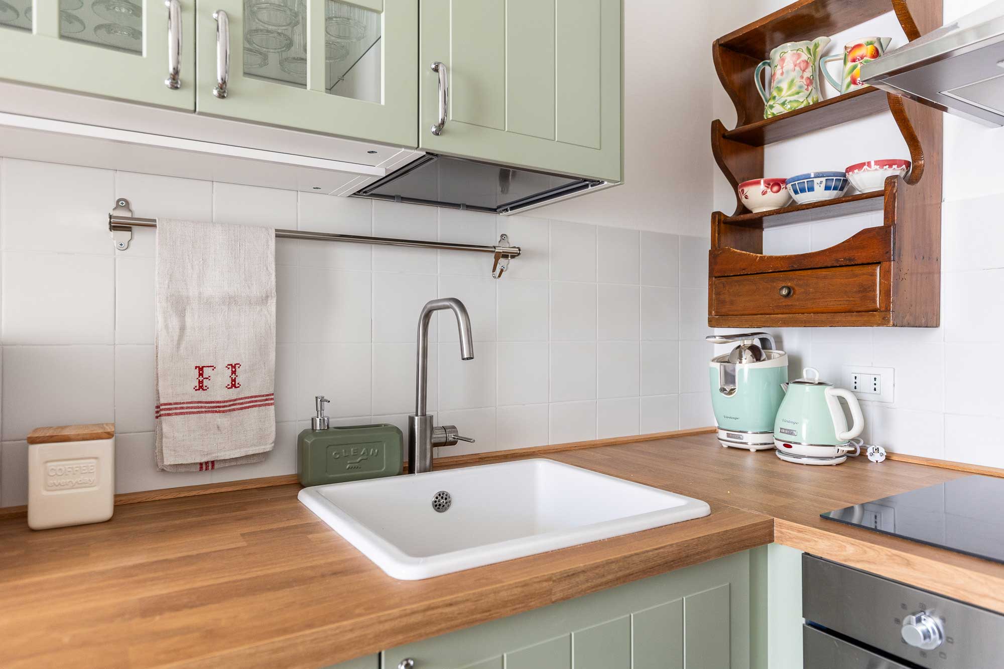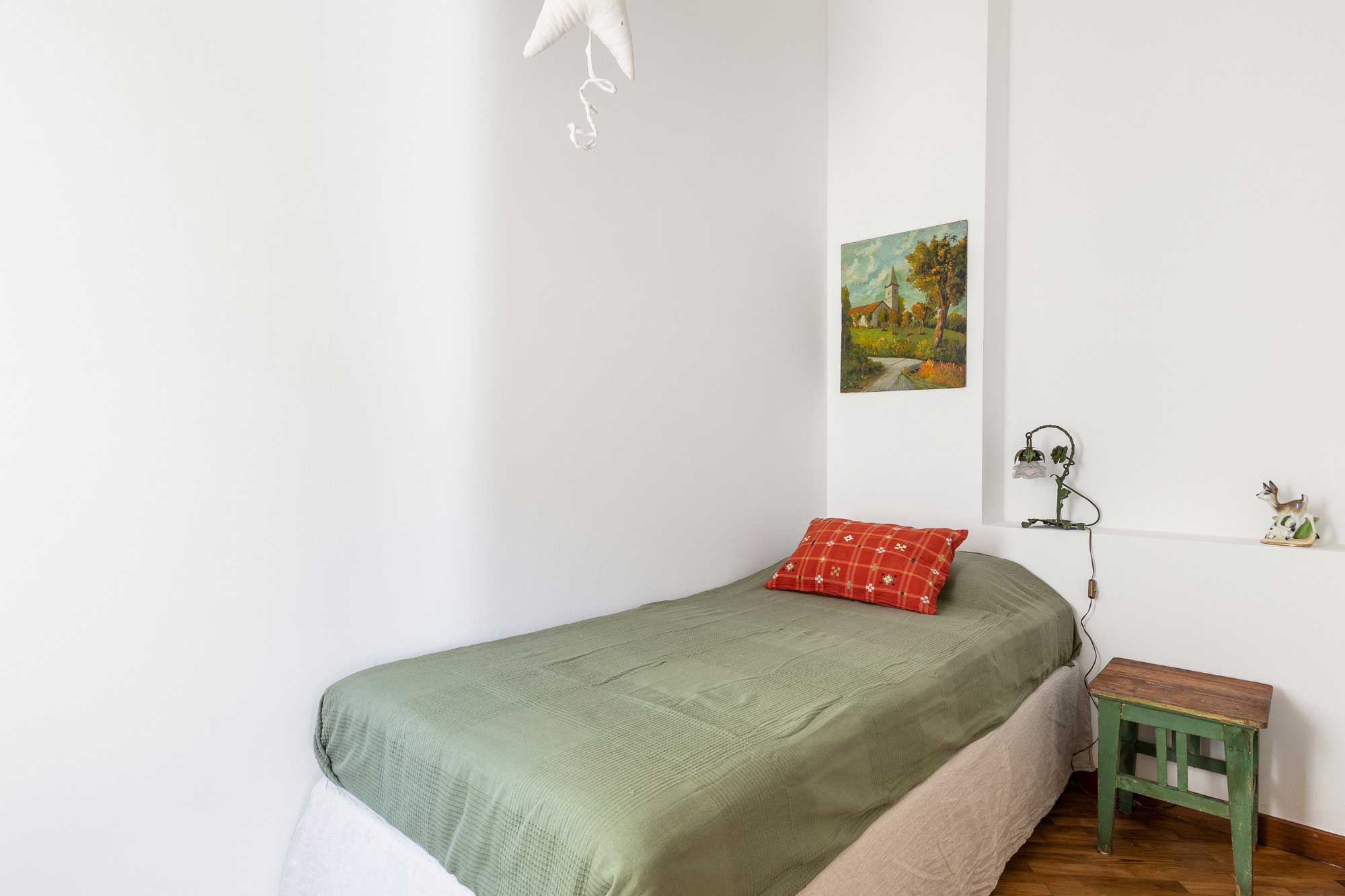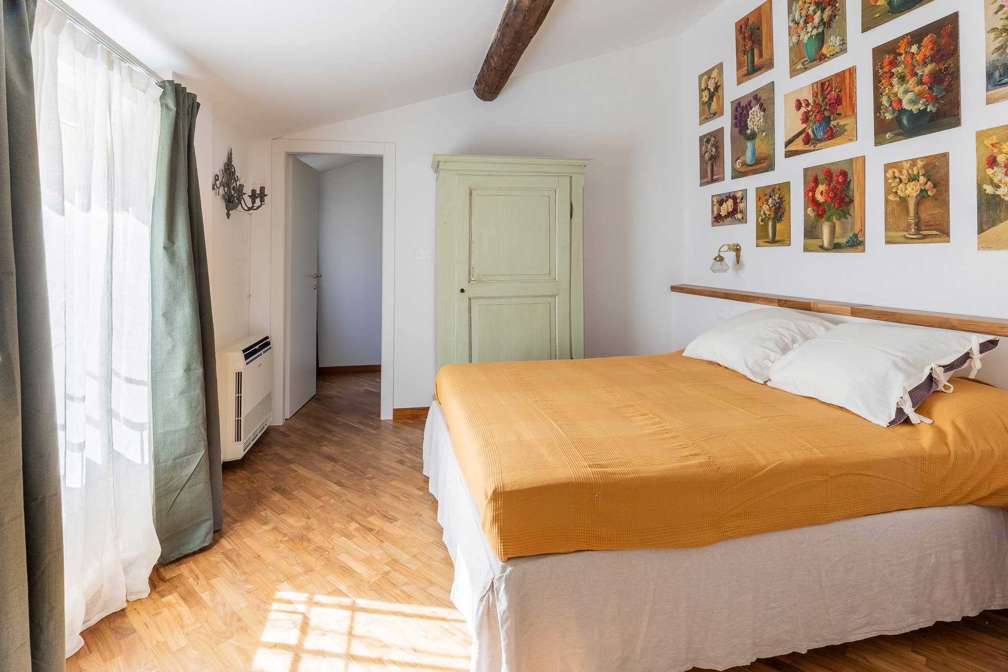 L’arredo è in stile con la trattoria, curato e confortevole. Luminosa zona giorno con divano letto matrimoniale, cucina attrezzata con elettrodomestici di qualità, camera matrimoniale, cameretta adiacente con letto singolo e bagno.