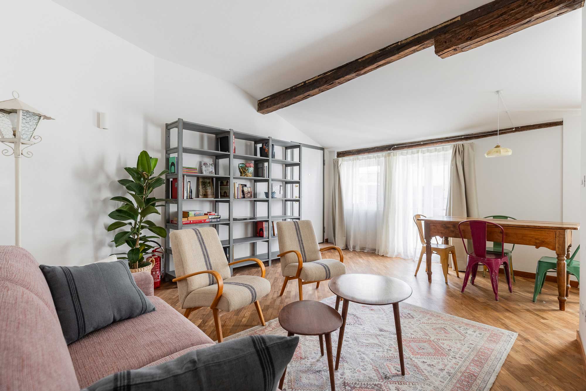 Appartamento mansardato di 75 metri, sotto i tetti, sito al terzo piano (senza ascensore) di un palazzo bolognese di fine Ottocento.